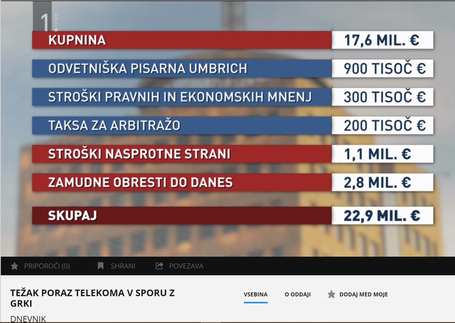 Za arbitražni postopek v katerem bi se Grki umaknili iz medijske družbe so porabili več kot milijon in številka ni dokončna. Družba ima negativni kapital, živi za to, ker vse izgube pokrije matični Telekom.